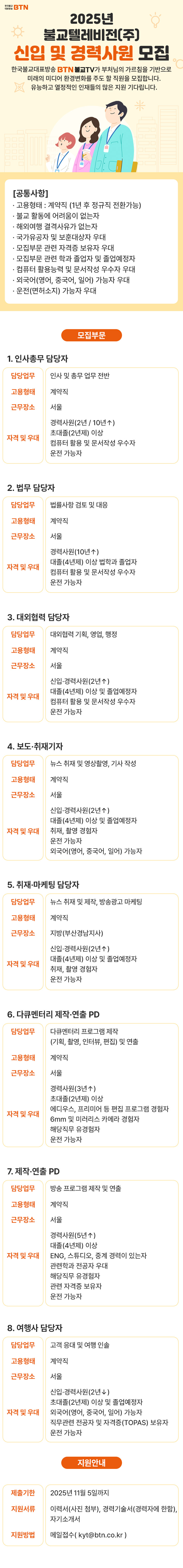(BTN°øÁö»çÇ×) 2025³â ºÒ±³TV ½ÅÀÔ ¹× °æ·Â»ç¿ø ¸ðÁý ¾È³»